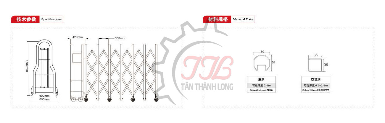 Sản phẩm Cổng Xếp Inox Nhập Khẩu QG-J1629 được nhập khẩu trực tiếp bởi Tân Thành Long